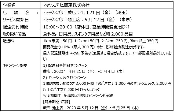 4月21日(金)- 5月12日(金)マックスバリュ関東:デリバリー開始