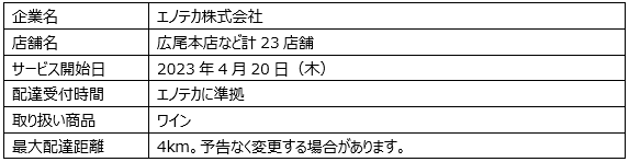 また、リカーショップのエノテカ(本社:東京都港区、代表:堀慎二)では、Wolt Driveのサービスを開始いたします。Wolt DriveはWoltが法人向けに提供する「サービスとしてのデリバリー(DeaaS:Delivery as a Service)」です。通常30分程度での商品の即時配送を希望する様々な企業が、Woltのアプリやウェブサイトに店舗ページを開設することなくWoltの配達システムを利用することを可能にします。Wolt Driveの導入によりエノテカでは、店頭でのご購入時や電話でのご注文でも自宅配送が可能になるため、より快適にワインがお楽しみいただけるようになります。