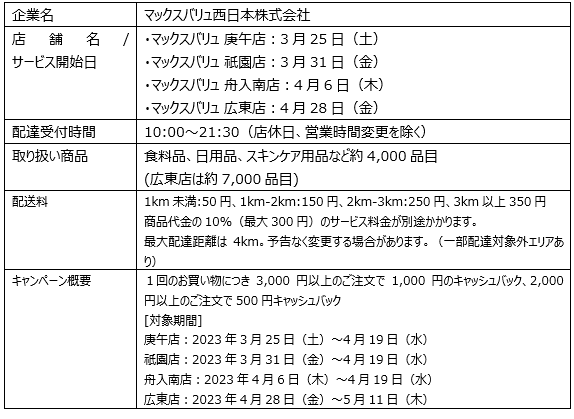 3月25日(土)- 4月28日(金)マックスバリュ西日本:サービス店舗拡大