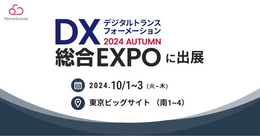 次世代型 代理店連携管理クラウド PartnerSuccess PRM(※1)を開発運営するパートナーサクセス株式会社(本社:東京都港区、代表取締役 永田雅裕、以下「パートナーサクセス」)は、2024年10月1日(火)~10月3日(木)に東京ビッグサイトで開催される、DX実現のための総合展「DX 総合EXPO 2024 秋 東京」に出展いたします。