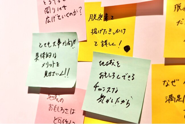 ■今回参加したイベントでは、様々な業界の方々や大学生など幅広く交流することができました。脱炭素の必要性、重要性を深く考えさせられる意見を集めることができました。これらを反映させて今後のプロジェクト構築へつなげていきたいと考えています。(福知山公立大学 4回生)