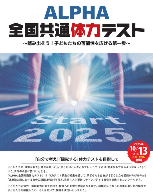 2020年度から体力テストデジタル集計アプリ『ALPHA』(以下、ALPHAという)を展開しているPestalozzi Technology株式会社(本社:東京都、代表取締役社長CEO 井上 友綱 以下ペスタロッチという)は、体力向上に取り組む全国の学校や児童・生徒達を応援するために、株式会社朝日学研シンクエスト(本社:東京都、代表取締役 丸山 洋)と、第1回ALPHA全国共通体力テストを開催することをお知らせいたします。