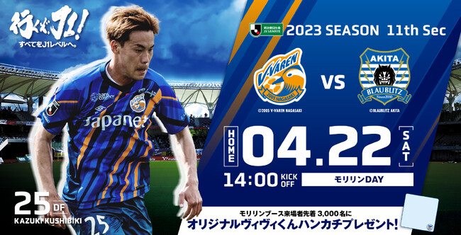 モリリン株式会社(本社:愛知県一宮市、代表取締役社長:森 俊輔、以下「モリリン」)は、2023年4月22日(土)に、長崎県諫早市のトランスコスモススタジアム長崎で開催される明治安田生命J2リーグ第11節 vs.ブラウブリッツ秋田に、メインスポンサーとして協賛することとなりましたのでお知らせいたします。試合当日はスタジアム内外で様々な催しを予定しております。