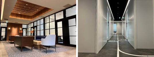 法人登記・住所利用可能、24時間365日利用可能。チャレンジ企業・スタートアップ企業の入居、サテライトオフィスとしての利用を想定したシェアオフィスです。 3階は空港ラウンジのような上質空間、4階は滑走路をモチーフにしたスタイリッシュな空間となっています。
