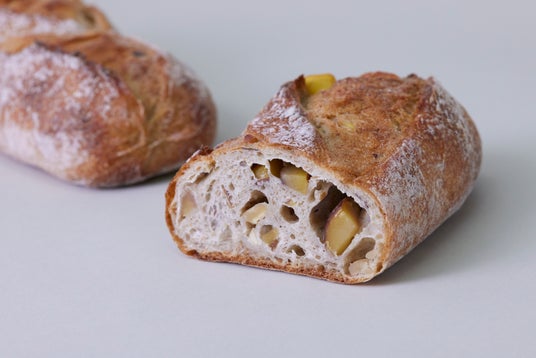 北海道産小麦【キタノカオリ】を100%配合した生地に、ゴーダチーズとマカダミアナッツを入れて焼きあげます。チーズの香り豊かなもっちりとした生地に、マカダミアナッツの食感がよくあいます。