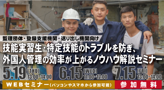 本セミナーでは、就労後のトラブルや早期離職、失踪を防ぐ方法や、業務の効率化に成功した監理団体などの事例やノウハウをご紹介します。