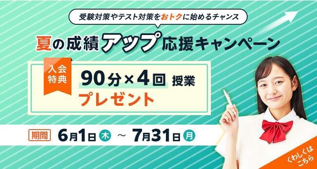 ご家庭だけではなかなか計画通りに過ごすことが難しい夏休み。明光義塾では夏休みの成績アップ応援キャンペーンを実施中!期間中にご入会いただいた方限定で、4回授業(1回あたり90分)をプレゼントいたします。