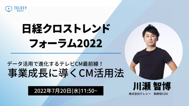 また、2022年7月20日(水)11時50分より、取締役COO川瀬が登壇し、「データ活用で進化するテレビCM最前線!事業成長に導くCM活用法」をテーマに、今後ますます高くなるテレビCMの可能性を語り、どのようにテレビCMを事業成長と直結させるのかを解説いたします。