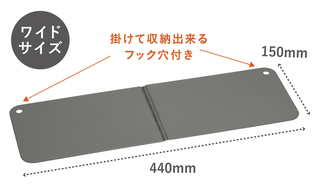 ネギやバケットなど、広げれば長い食材を切るのに便利なワイドサイズ。畳むとかなりコンパクトになり、フック穴も付いているのでキャンプやアウトドアに持って行くのもおすすめです。
