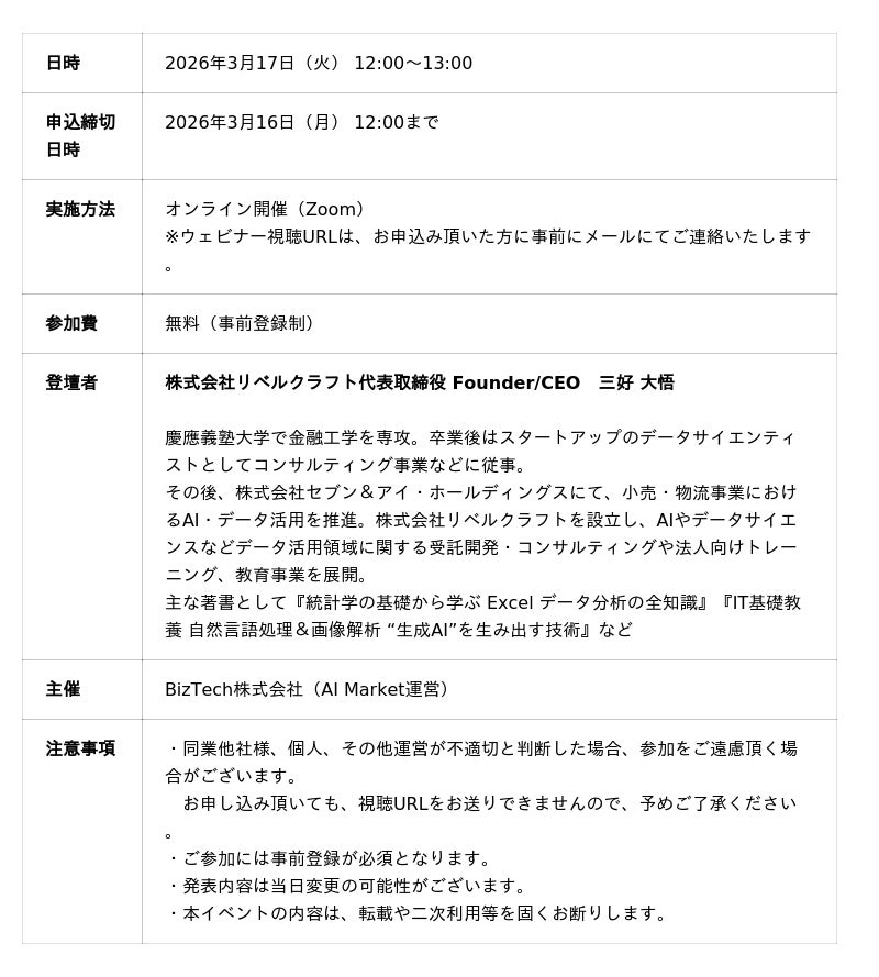 ▶ウェビナー詳細はこちら:https://ai-market.jp/events/libercraft-webinar-202603/