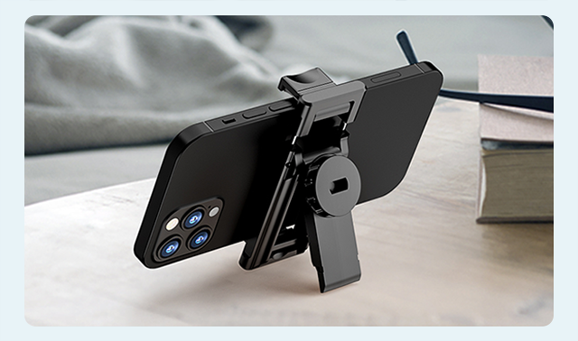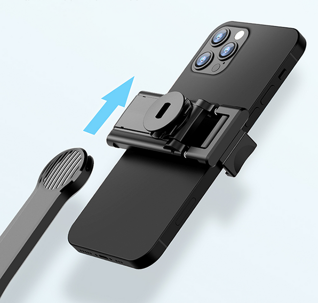 ・着脱式ホルダー構造を採用。撮影中に簡単にスマホを取り外せる