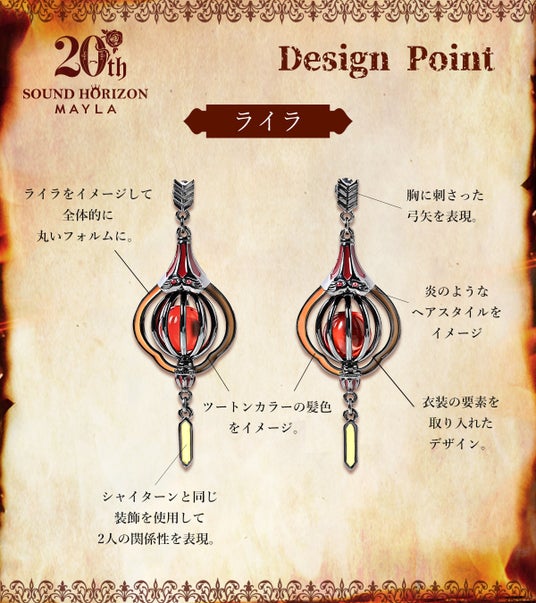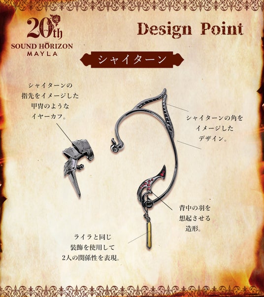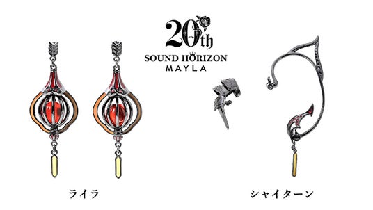 この度MAYLAは、Sound Horizonメジャーデビュー20周年を記念した商品企画をプロデュース。第二弾として『聖戦のイベリア』に登場するライラとシャイターンをイメージしたアイコニックなイヤアクセサリーが登場しました。