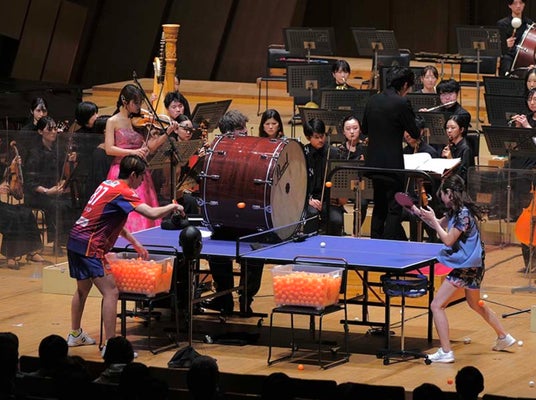 この公演は、若手実力派音楽家によるプロオーケストラ「タクティカートオーケストラ」と、Tリーグ「琉球アスティーダ」がタッグを組み、一夜限りのオーケストラと卓球のコラボを実現。コンサートでは、ピンポン協奏曲、モーツァルトのピアノ協奏曲、ベートーヴェンの『第九』第4楽章が演奏された。