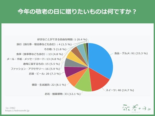 敬老の日に特化した情報メディアサイト「敬老の日.jp」( https://keirounohi.jp/ )は、2024年7月に346人に対し行った「敬老の日に関するアンケート調査」のデータを公開しました。