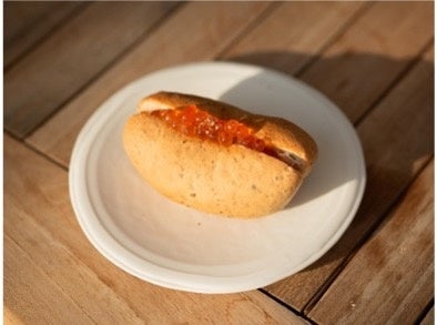 オレガノ香る自家製のロールパンに「シラリカいくら」とクリームチーズを挟みました。
