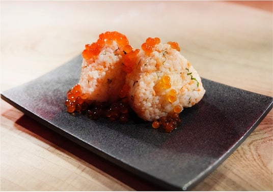 根室産の雲丹を混ぜた寿司ライスに「シラリカいくら」をトッピングした逸品です。※本メニューはお任せコース内での提供になります