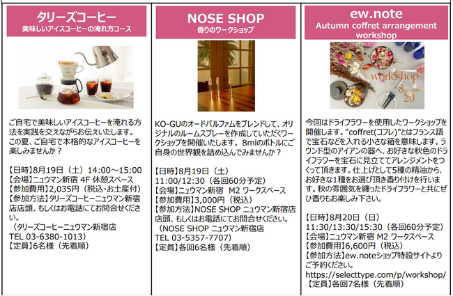 ニュウマン新宿の人気ショップが特別ワークショップを実施!自分磨きのためにはもちろん、ブランドの魅力をさらに発見できる企画です。※事前予約制