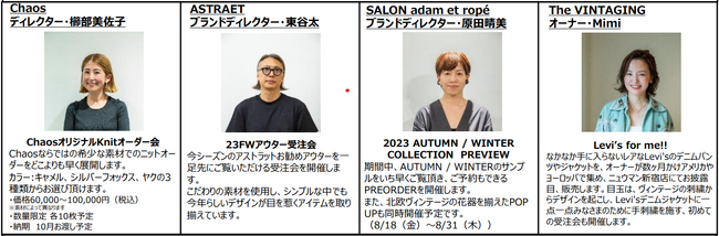【対談ショップ】Chaos、ASTRAET、SALON adam et rope、The VINTAGING