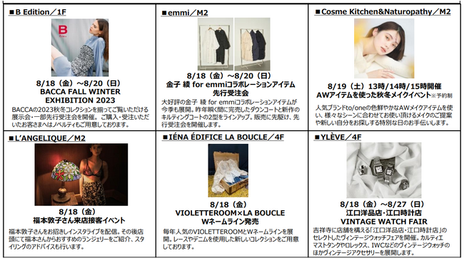 VIOLETTEROOMとIENA LA BOUCLEのWネームラインコレクションの発売や、B Editionの秋冬展示会&先行受注会など、総勢46ショップで特別施策をご用意