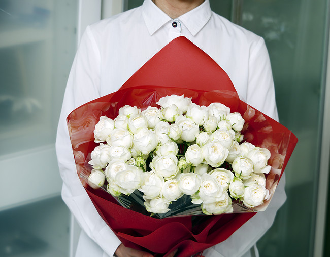 2022年3月、うまいもんドットコムを含む系列店3店での、会員数が77万人を超えたことを記念し葛西の花卸と一緒に特別なバラの花束を新しく作りました。特徴はこのボリューム、そして純白の幾重にも重なった美しい花弁。