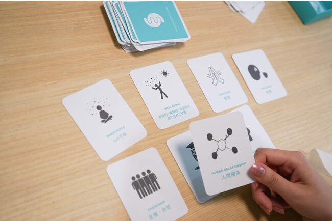 株式会社トリプルバリュー(代表:山本龍太)が提供する「エンゲージメントカード(※1)」を使用し、価値観を共有するワークショップを行いました。88枚のさまざまな価値観が描かれたカードの中から、自身が大切にする7つの価値観を選び、その価値観をチームメンバーとシェア。そして、7つの価値観と当社の3つのバリューをどう結び付けられるかをチームで考え、「今後どのように行動していくか」を具体的に言語化しました。社員からは「自分の価値観を尊重しながら、会社でどのように行動していくかを考える良い機会であった」「自分の価値観を改めて知ることが自己理解へとつながった」「いつも一緒に働くチームメンバーの価値観を知る事がとても新鮮だった」と大変好評でした。