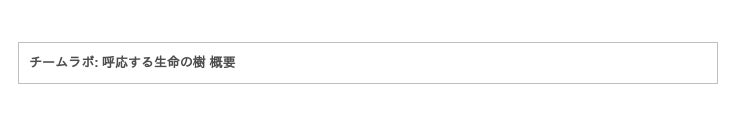 光の球体の集積によって形作られた立体のツリー(高さ8m・直径6m)。光の球体は、音色に合わせて色が変わっていく。人が叩くと、光の色が変化し、色特有の音色を響かせる。そして、そのまわりの球体も呼応し、同じ光の色に変化して音色を響かせていき、次々にまわりの球体も呼応していく。