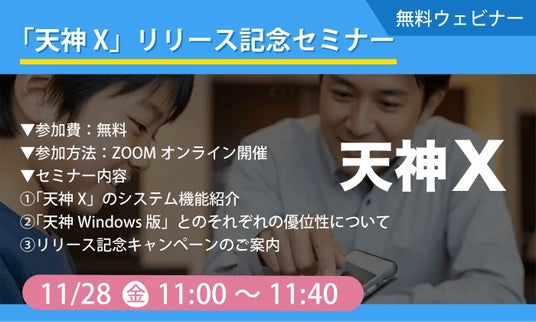 ICT教材『天神』シリーズを企画・開発・販売する株式会社タオ(本社:滋賀県草津市、代表取締役:黒澤慶昭)は、2025年11月リリースの新商品『天神X』の全貌をご紹介する「『天神X』リリース記念セミナー」を、11月28日(金)にオンラインで開催することをお知らせいたします。本セミナーでは、新機能の詳細なご紹介に加え、既に多くの方からご質問をいただいている従来のWindows版との違いを徹底比較。貴施設にとって最適な一手を見極めていただくための、有用な情報をご提供します。