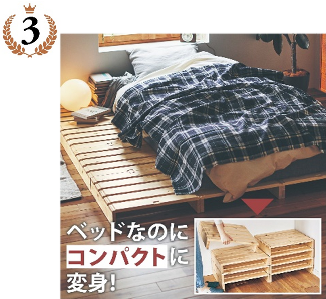 蒸し暑い夏の睡眠時間を快適にしてくれるベッドです。すのこ状で通気性がよく、湿気がこもりにくいのがポイント。組み立てが簡単で、丁寧な作りで長く使えることも好評の要因。使わない時はスタッキングして省スペースに収納可能。使いたい分だけ組み合わせて使える新感覚のベッド。