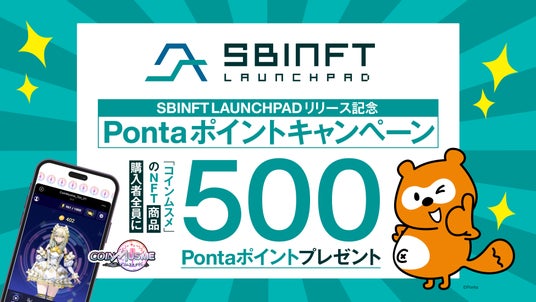 「SBINFT LAUNCHPAD」のリリースを記念して、2024年11月15日から販売開始する「コインムスメ」のNFTの購入者全員に、500Pontaポイントをプレゼントいたします。