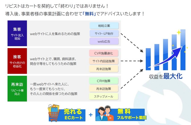 事業:リピート通販専用カート「RPST(リピスト)」、トータルソリューションパッケージ「CLONA(クローナ)」、EC構築システム「PRECS(プレックス)」の提供