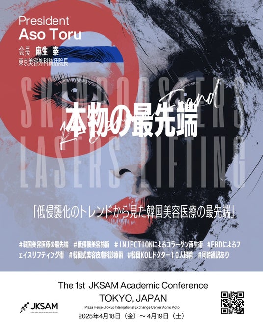 医療法人社団東美会 東京美容外科(統括院長:麻生泰)は、2025年4月18日(金)~19日(土)に東京で開催される「第1回 日韓美容外科学会(JKSAM Academic Conference)」において、統括院長の麻生泰医師が学会会長(President)として登壇予定であることをお知らせいたします。
