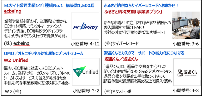 店舗・EC DXPO 大阪’24 出展製品・サービス(一部抜粋)