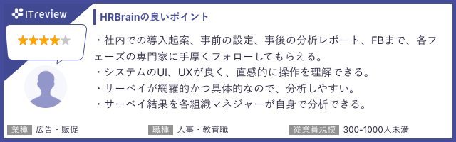 HRBrainをご利用いただいているお客様から頂戴したレビューの一部を紹介します。