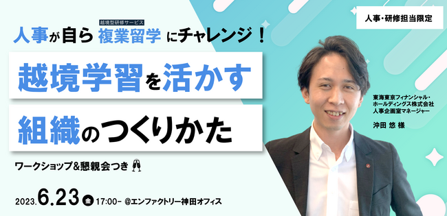 「越境学習」の導入を実施した人事であり、ご自身も越境学習「複業留学」を体験された東海東京フィナンシャル・ホールディングス株式会社 沖田 悠様をゲストに「“越境経験者だからこそ”語れる越境のリアル」についてざっくばらんにお話いただきます。