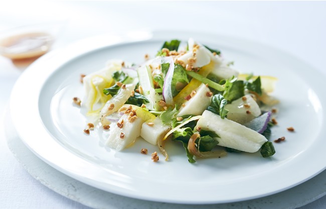 ねっとりとした食感が特徴の長芋「根張星(R)」とほろ苦いルッコラを組み合わせた、季節を感じられるサラダです。