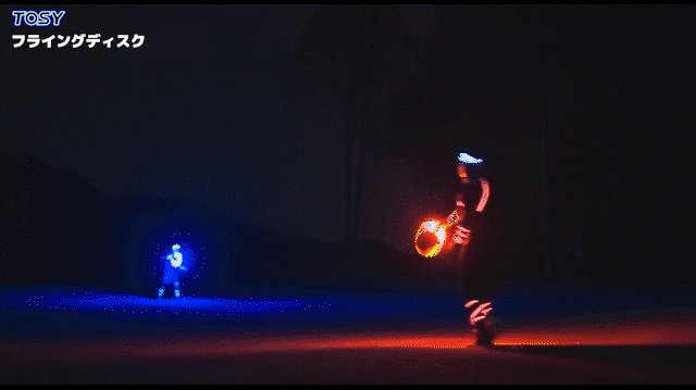 円盤の周囲には360個の高精度LEDを内蔵しており、手を離れると眩いばかりの光の輪が飛んでいきます。暗闇に光るその姿はまるで未確認飛行物体のようで、近未来感のあるSFの世界観が楽しめます。