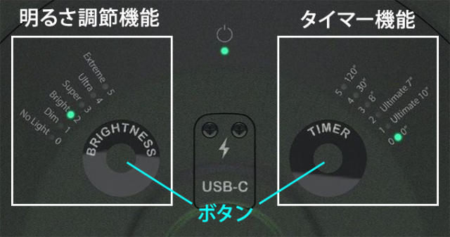 円盤の裏側にある「BRIGHTNESS」ボタンを押すとモード変更可能。