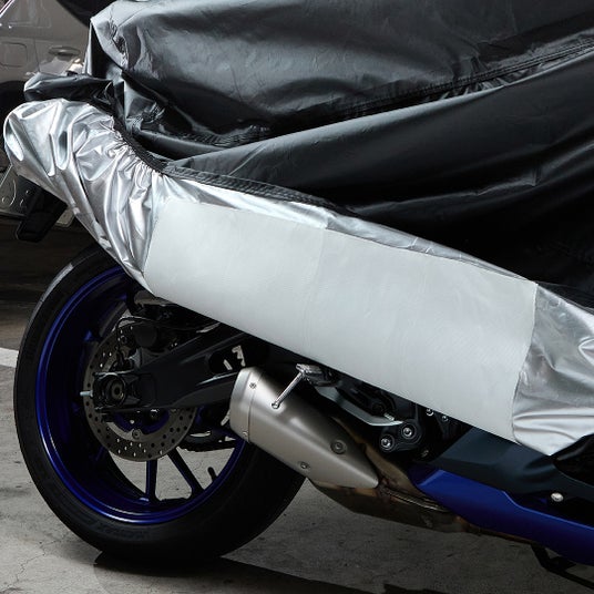 マフラーなど高温部分が接触する部位に貼り付け可能な耐熱シートを付属。約)70cm×30cmの大判サイズのため、多少のカバーずれを補います。