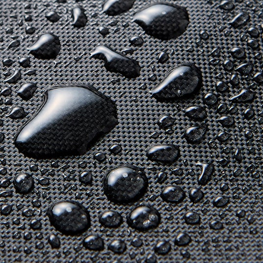 テントやタープなどにも使用されており、厚手で耐久性に優れた「420Dポリエステル」を採用。耐水圧は、大雨を凌ぐ基準値の10,000mm。縫い目からの雨水の浸入を防ぐシーム処理を施しているため、防水性にも優れています。