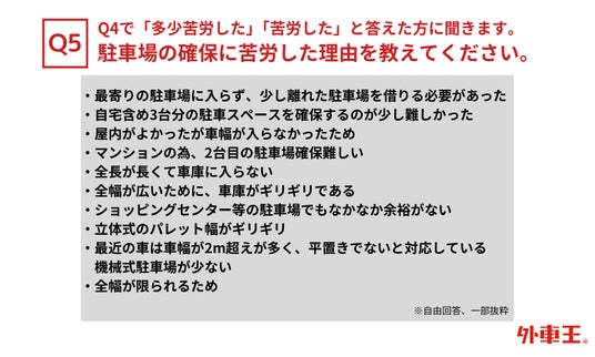 駐車場の確保に苦労した理由として、上記のような意見が挙げられました。