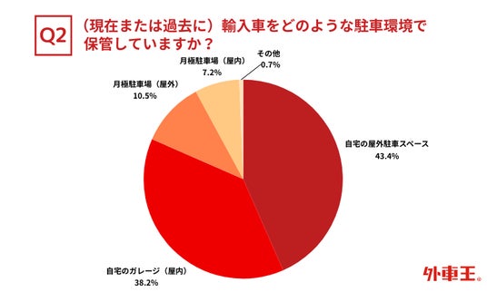 Q1で回答の多かった地域のように、地方都市では自宅に駐車スペースを確保しやすいため、多くのオーナーが自宅で輸入車を保管していると考えられます。