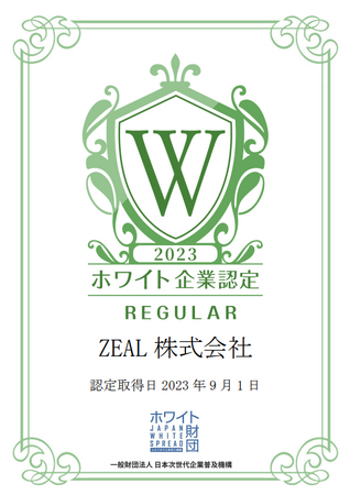 ZEAL株式会社様が、一般財団法人日本次世代企業普及機構(通称:ホワイト財団)が運営する「ホワイト企業認定 レギュラーランク」を取得しましたことをお知らせいたします。