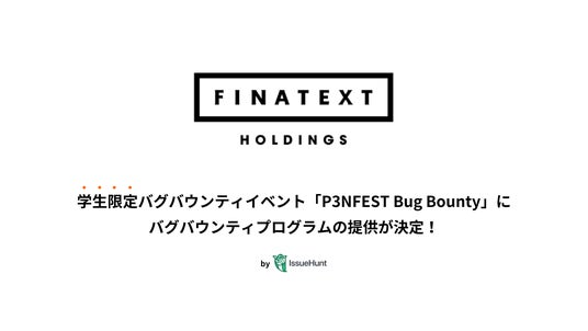 バグバウンティ・プラットフォームやプロダクトセキュリティ支援サービス等を提供するIssueHunt株式会社(本社:東京都中央区日本橋茅場町一丁目8番1号、代表取締役:横溝 一将、HP:https://issuehunt.jp )が開催する、学生向けバグバウンティイベント「P3NFEST Bug Bounty」について、Finatextホールディングス様にご提供いただくバグバウンティプログラムが決定しましたので、お知らせいたします。