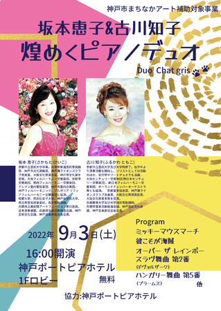 神戸ポートピアホテル(神戸市中央区、総支配人 伊藤 剛)の本館1階メインロビーにて、2022年9月3日(土)に「まちなかアート補助対象事業」として2つのコンサートが開催されます。