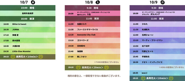 ※10/8 TUBE、10/9 ASKAの配信はございません。