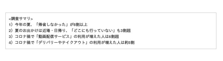 ヨムーノメイトを対象にアンケートを実施、コロナ禍2度目の夏休みは「帰省しなかった」人が8割以上