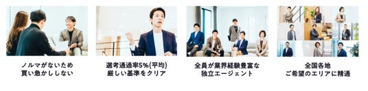 選考通過率5%(平均)の厳しい基準をクリアし、豊富な知識・経験をもとに徹底的にDXされた環境で働く独立エージェントのみで運営しており、物件提案だけではなく、家探しにまつわるさまざまなお悩みにとことん寄り添い、解決いたします。