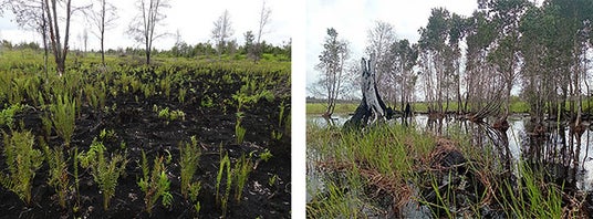 熱帯泥炭地の管理には地下水位の維持が重要で不適切な土地管理や農業開発、プランテーションのために水が排水されると土壌が乾燥し、微生物による分解が進む他、火災発生によって大量のCO2が大気中に放出されます。一方で地下水位が高くなりすぎると樹木の生育を妨げるため地下水位の管理が非常に重要です。