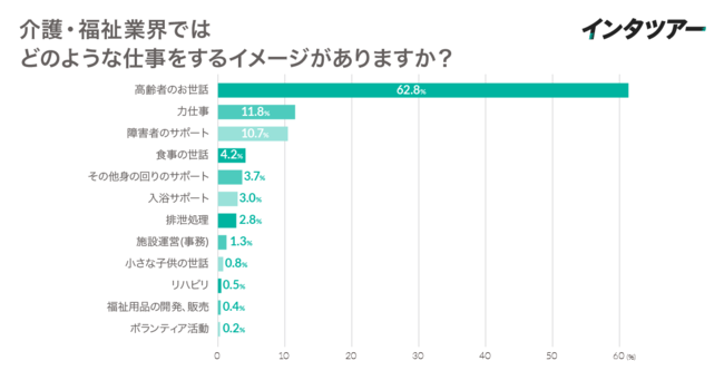 介護・福祉業界の仕事「高齢者のお世話」62.8%