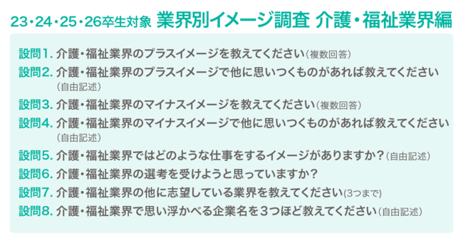 23・24・25・26卒生対象 業界別イメージ調査 介護・福祉業界編 設問構成
